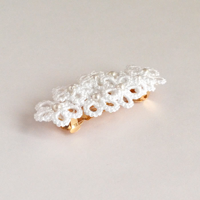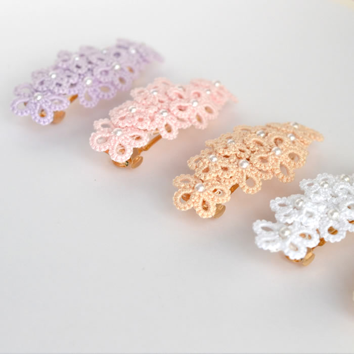 タティングレース 花 フラワー ホワイト 白 バレッタ 髪留め 髪飾り ヘアアクセサリー 大人 可愛い かわいい 春 夏 秋 冬 レース編み レース レースフラワー 母の日 パール 小さい 結婚式 ウェディング ブライダル