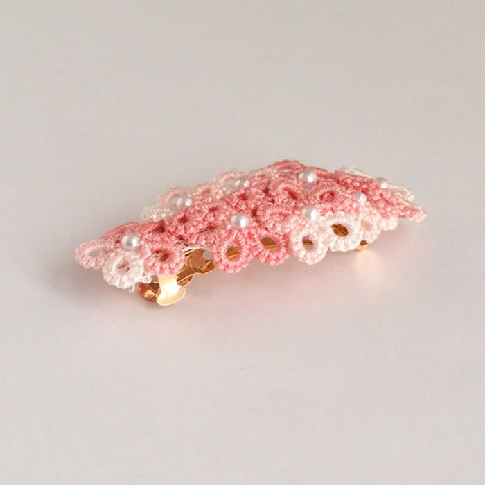 花束バレッタ ヘアアクセサリー レース編み タティングレース