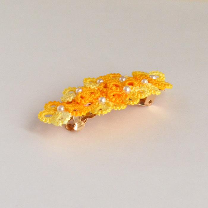タティングレース 花 フラワー ピンク オレンジ パープル ブルー 桜色 黄色 青 紫 ホワイト さくら サクラ バレッタ 髪留め 髪飾り ヘアアクセ ヘアアクセサリー 可愛い かわいい 春 夏 秋 冬 レース編み レース レースフラワー 母の日 結婚式 ウェディング ブライダル パール 浴衣 かわいい 可愛い お呼ばれ